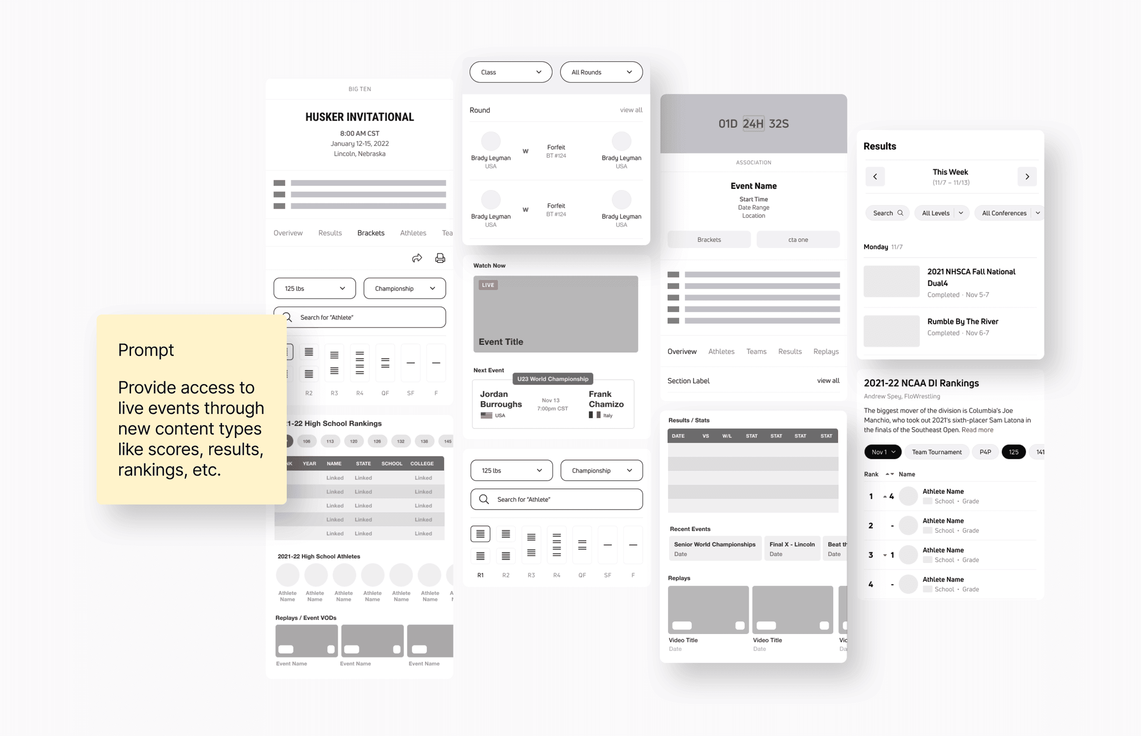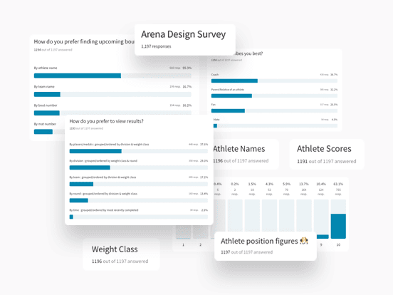 To kick things off, we created a simple survey followed by ~20 in-depth interviews using FloWrestling, Trackwrestling, and Arena products. We focused our research on the Homepage, Athletes, Results, Rankings.